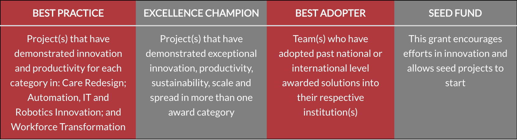 Organised by CHI and supported by the Ministry of Health as well as the Ng Teng Fong Healthcare Innovation Programme, the annual National Healthcare Innovation & Productivity (HIP) Medals is a prestigious, national-level award that recognises local and private healthcare; as well as community/ intermediate and long-term care institutions that have demonstrated thought leadership and excellence in healthcare innovation & productivity.